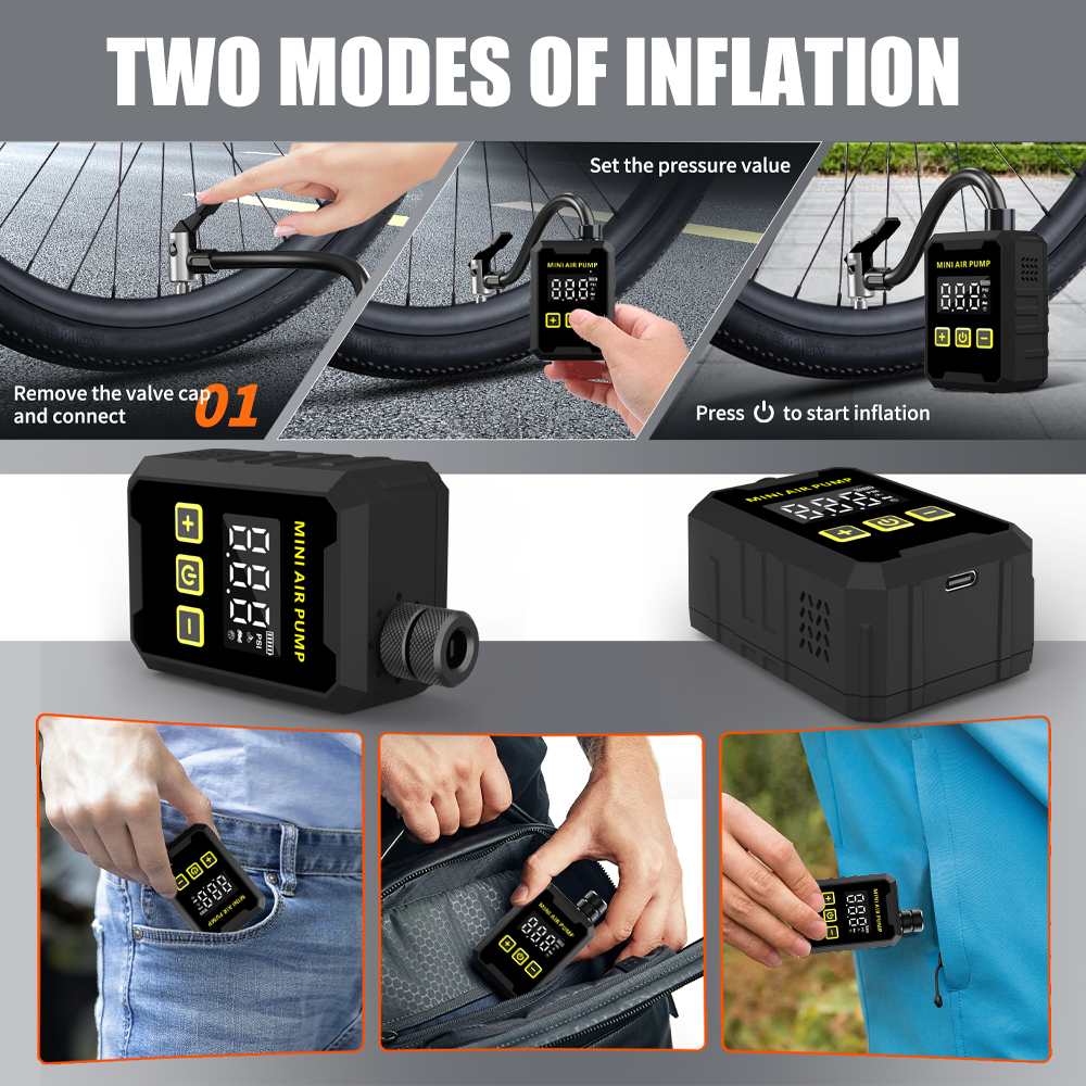 Battery Type: lithium-ion battery Battery Grade:A+ Battery Capacity:500mAh Battery Energy:3.7Wh Type-C input:5V1.5A Max. Pressure:3-15PSI Inflation Rate:15L/Min Cylinder specification:12MM Dimension:73*50*32mm Weight:160g Color:Green Battery Cycle Life: more than 1000times Full Charge Time:40 min Appicable Temperatue: 40 min Applicable Temperature:-30+65℃ Shell Materia:PC+ABS Flame Retardant Grade: VO